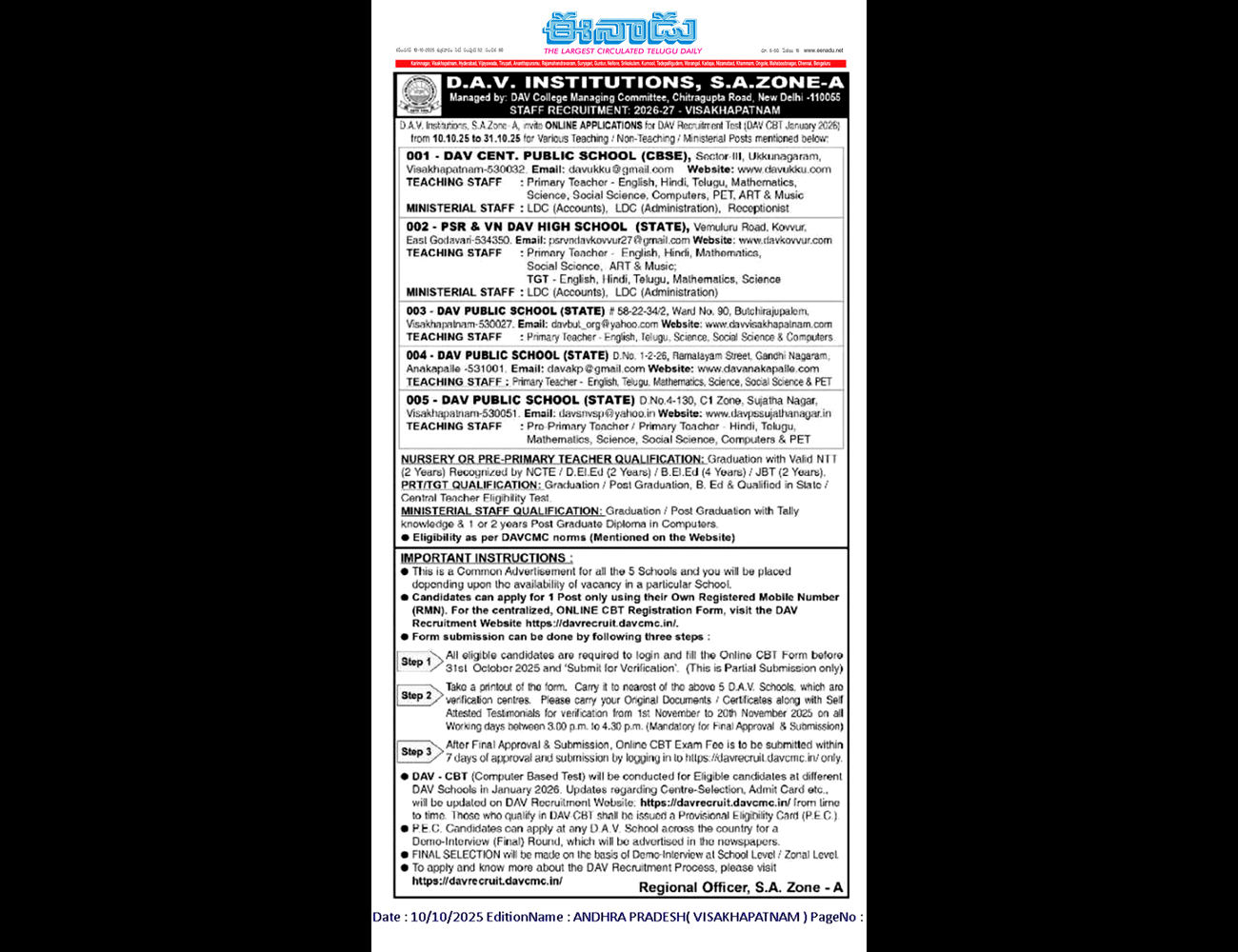 PSR & VN DAV HIGH SCHOOL VEMULURU ROAD, KOVVUR, WEST GODAVARI, ANDHRA PRADESH-534350 E-Mail: psrvndavkovvur27@gmail.com Phone: 08813233929 Website: www.davkovvur.com